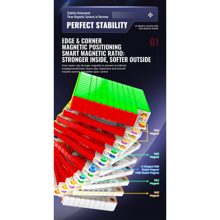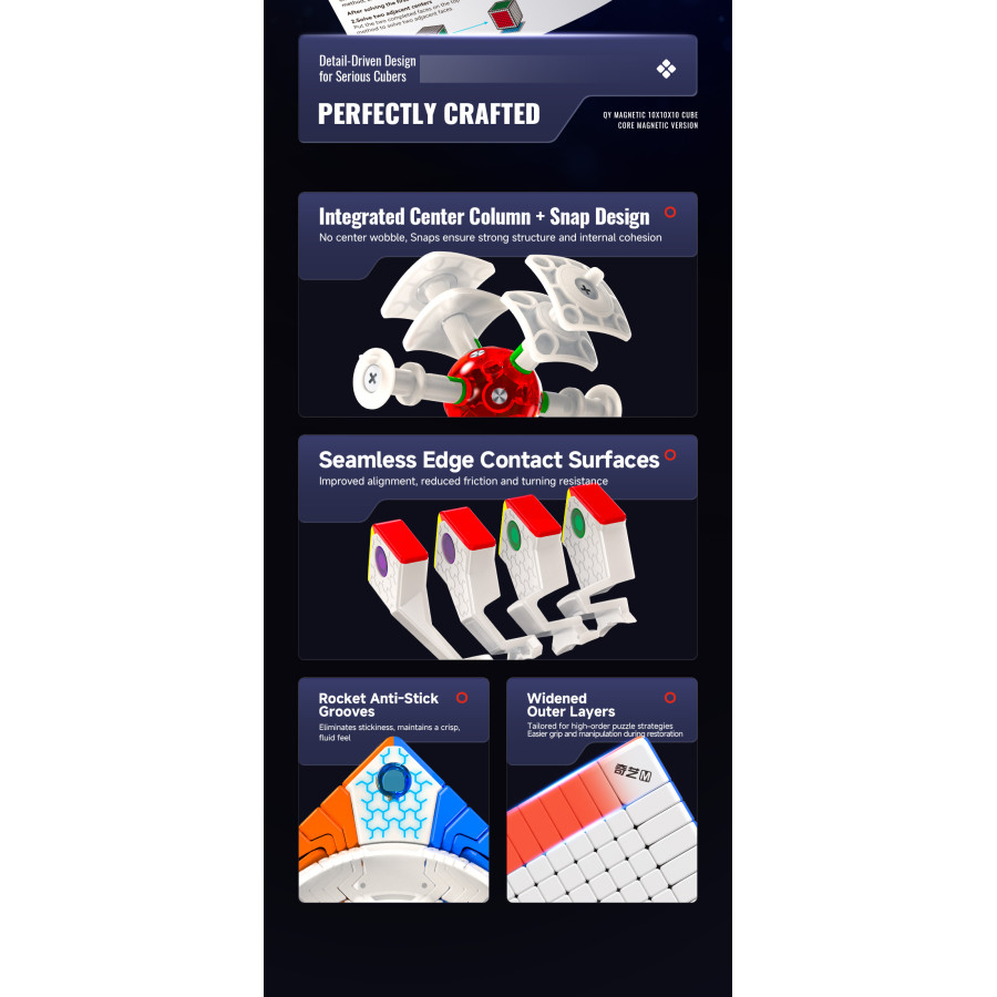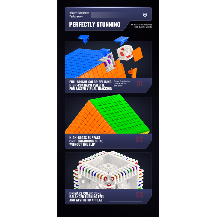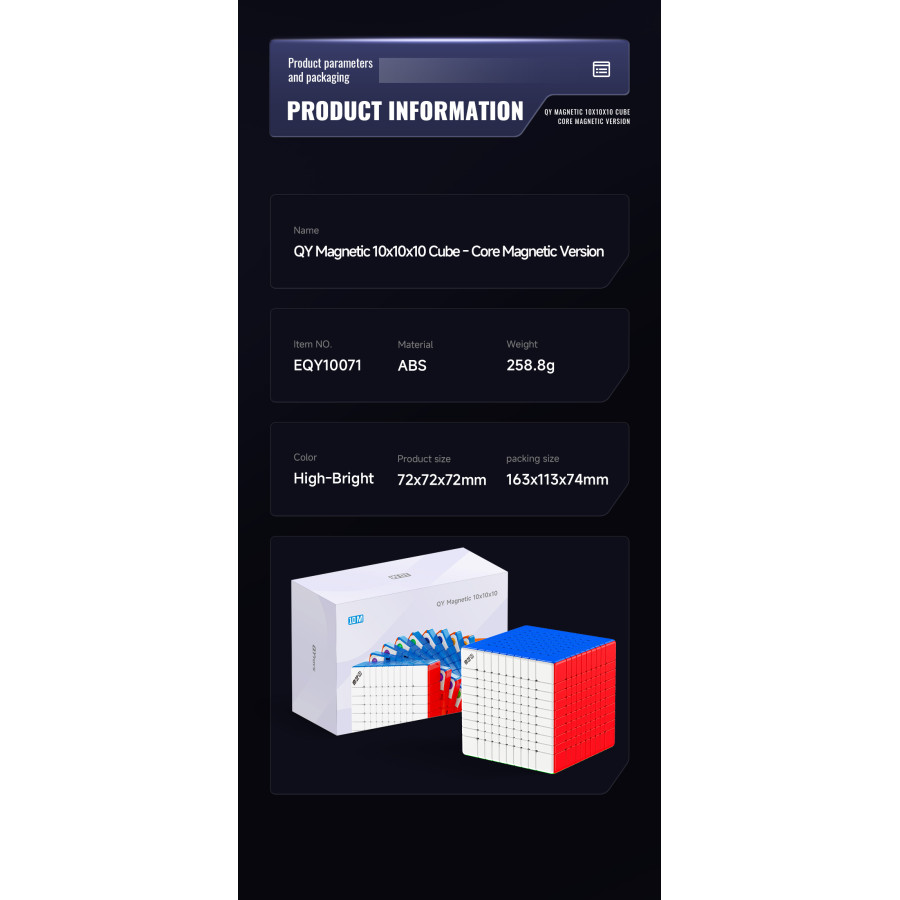 Le Meilong 8x8 est un Rubik’s Cube 8x8 premier prix, c’est un cube assez compact puisque qu'il est un peu plus petit que les autres cubes 8x8.Sa rotation est très bonne et peut s’améliorer beaucoup si elle est ajustée et lubrifiée correctement.C'est une excellente option pour apprendre à résoudre le cube 8x8.