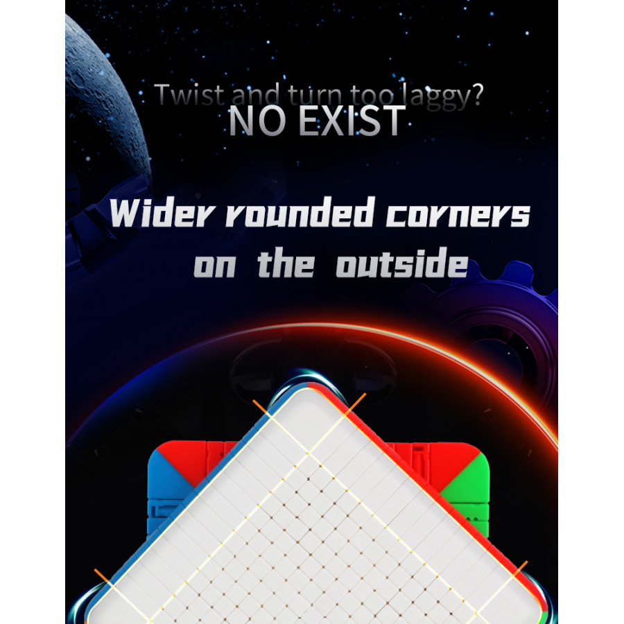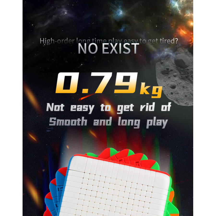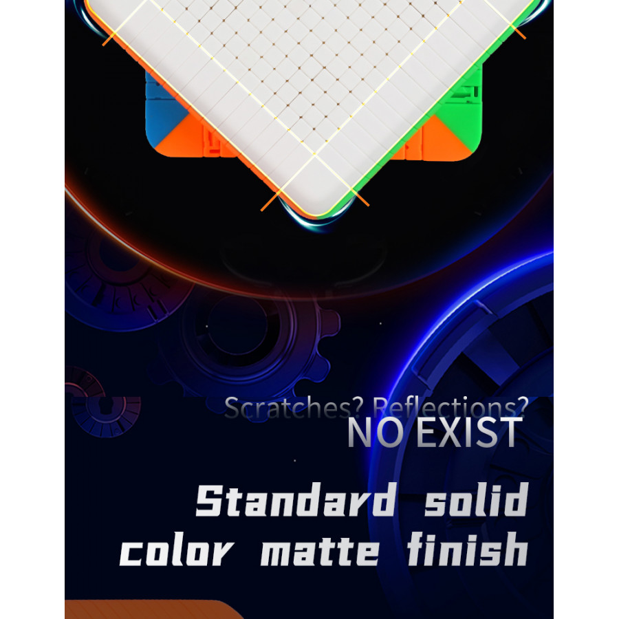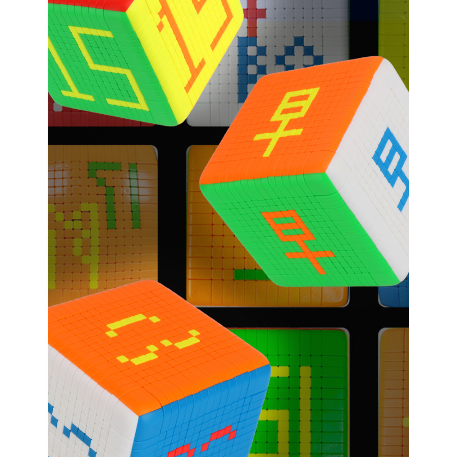 Le ShengShou 14x14 est le premier 14x14 produit en série dans le monde ! Le 14x14 est doté d'un nouveau design léger qui améliore l'expérience de résolution en rendant le puzzle plus facile à manipuler et à tourner. En outre, la palette de couleurs sans autocollant présente des nuances vives et faciles à distinguer.