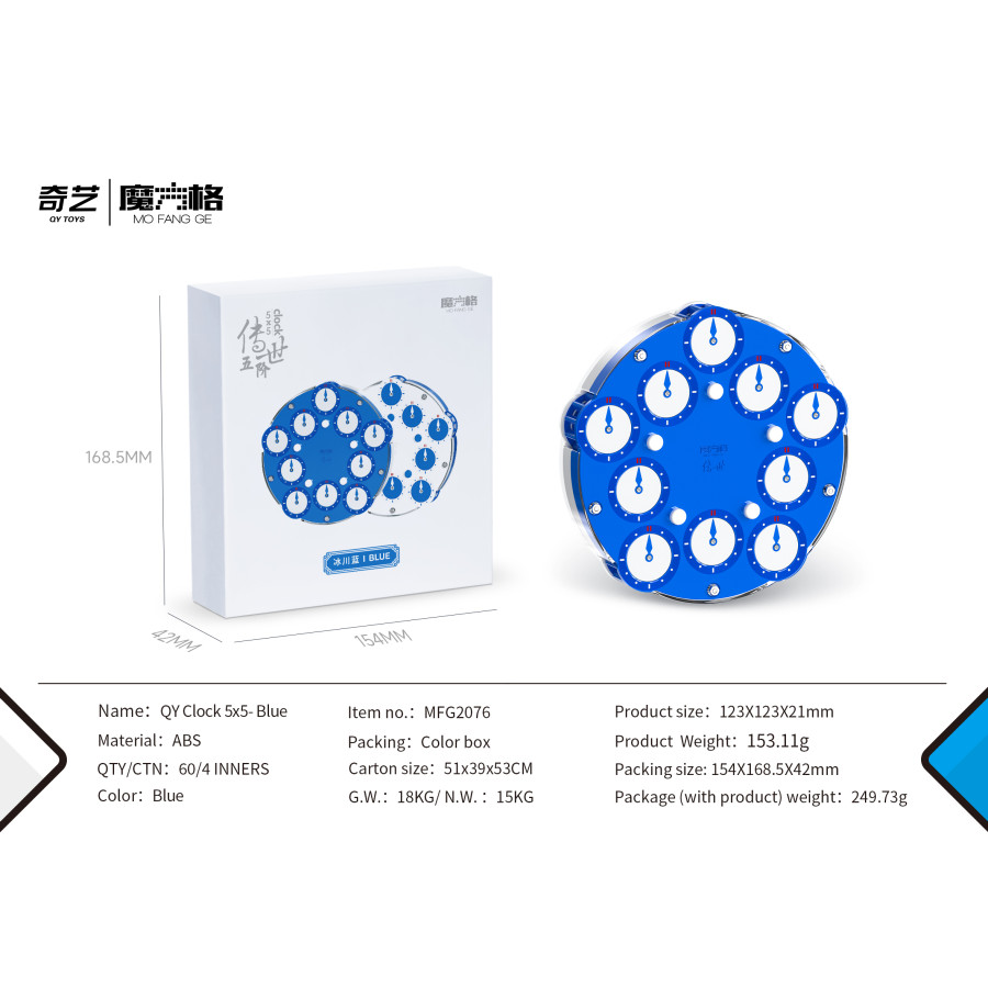 Repousse les limites de la résolution avec la QiYi 5×5 Magnetic Clock, une horloge inédite au design raffiné et à la mécanique d’une précision redoutable. Inspirée du célèbre QiYi Clock, cette version 5×5 élève la barre en offrant plus de cadrans, plus de défis et une fluidité jamais vue.