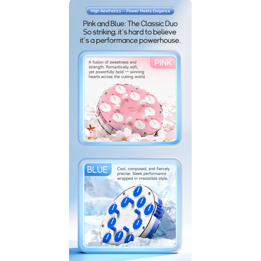Finition premium disponible en deux coloris élégants : Bleu Arctic et Rose Sakura.