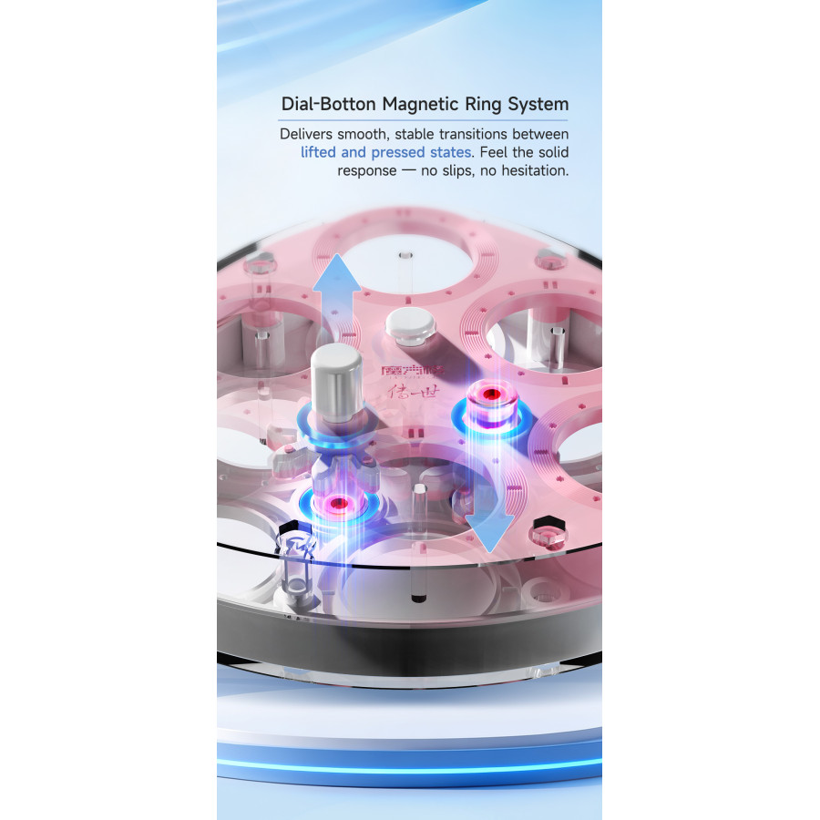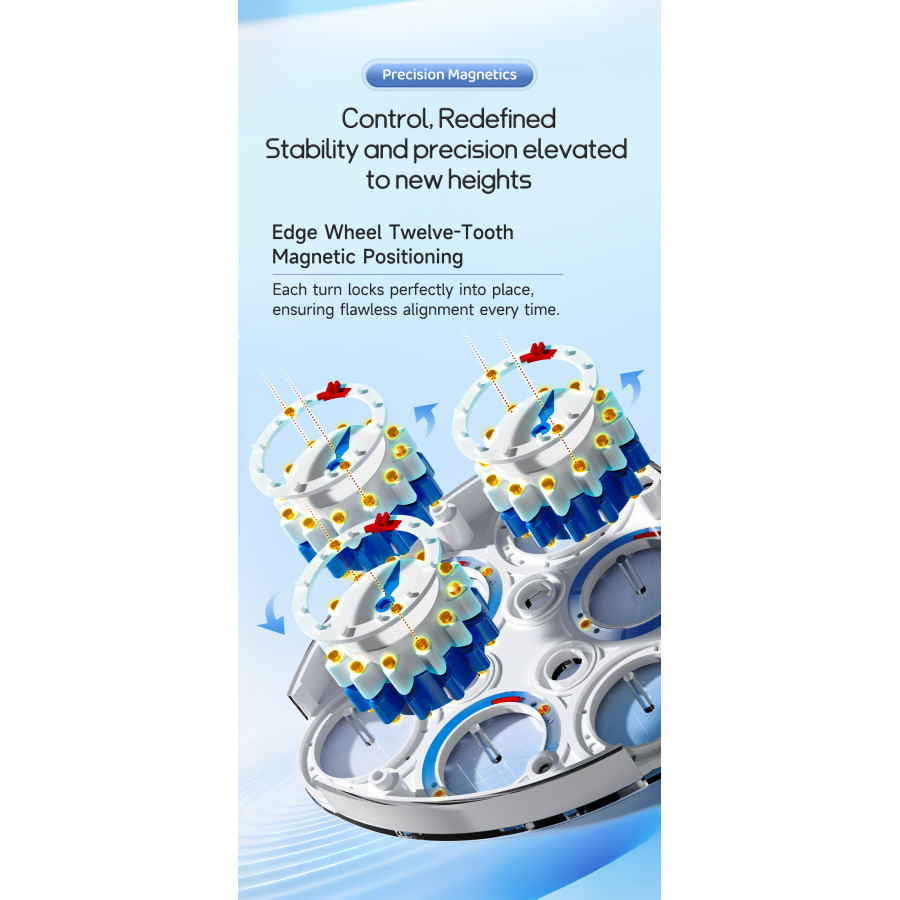 Structure magnétique intégrale : chaque cadran, bouton et anneau est équipé d’aimants néodyme assurant un retour précis et des mouvements parfaitement alignés.