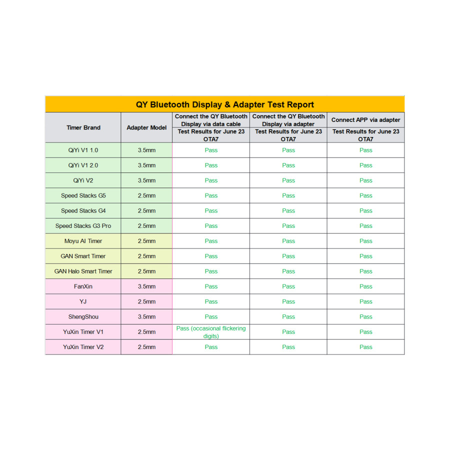 Fonctionne avec la majorité des timers du marché : Qiyi Timer V1 mais aussi d’autres marques reconnues (Stackmat, Yuxin, YJ ...).