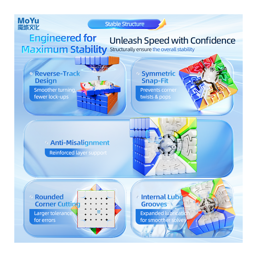 Conçu pour les cubers les plus exigeants, le AoShi V4 Triple-Track Magnetic repousse les limites du contrôle et de la stabilité sur un cube 6×6. Grâce à son système à trois pistes aimantées et une ingénierie ultra-optimisée, il offre une expérience de résolution où chaque mouvement se “verrouille” avec précision.