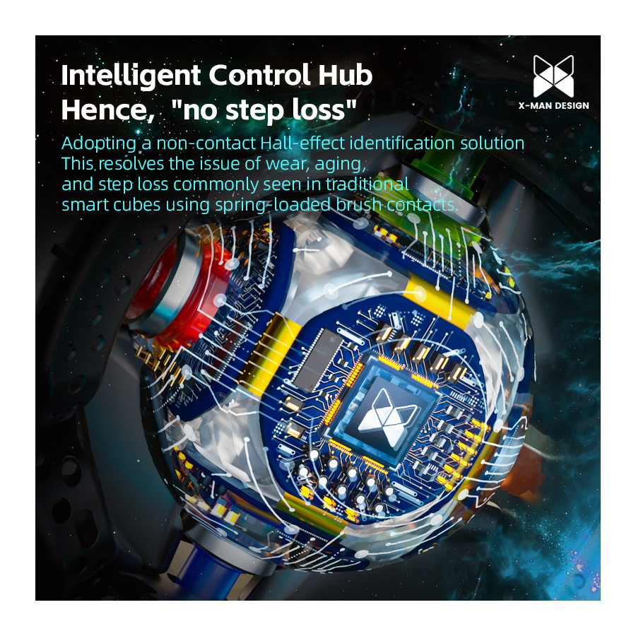 Technologie intelligente : cube connecté via Bluetooth, avec gyroscope haute précision et algorithme avancé de reconnaissance des rotations pour suivre chaque mouvement.