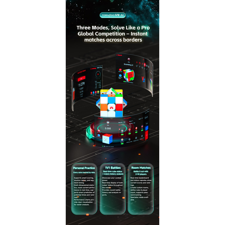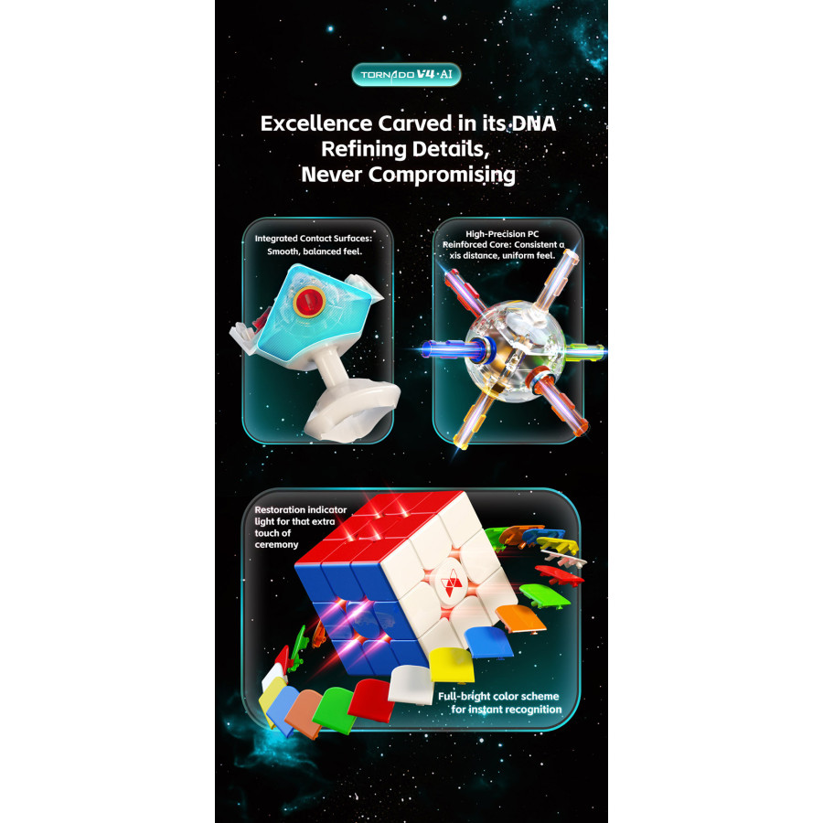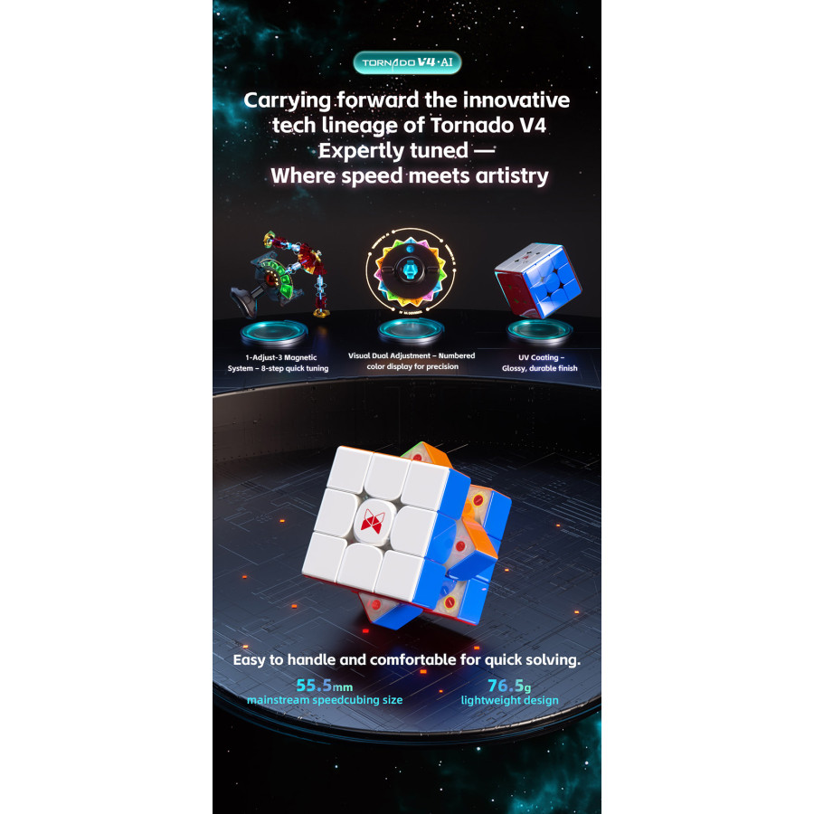 Le Tornado V4 AI est un cube 3×3 de nouvelle génération combinant performance technique de haut niveau avec connectivité intelligente. En plus de tourner parfaitement, il offre un suivi précis, des outils d’entraînement avancés et une expérience utilisateur enrichie via l’application dédiée. Le tout dans un format ergonomique, durable grâce à sa finition UV et autonome grâce à une batterie longue durée.