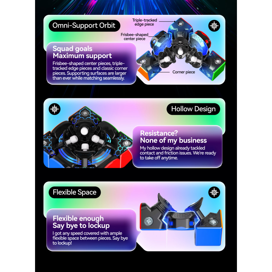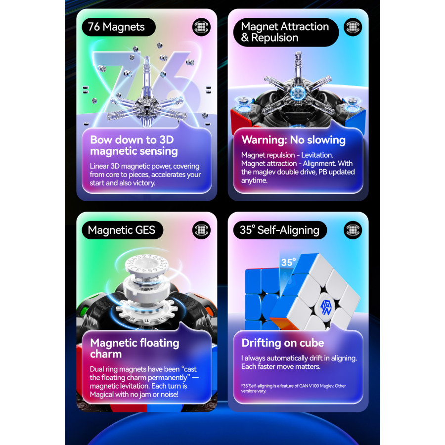 Montrez vos cubes 3x3 préférés avec le présentoir à cubes GAN ! Contrairement aux supports de cubes traditionnels, cette version donne une nouvelle tournure aux choses !2 réglages possible :Verrouillé : Permet au cube de tourner sur le support par incréments de 45 degrés.Déverrouillé : Permet au cube de tourner librement sur le support