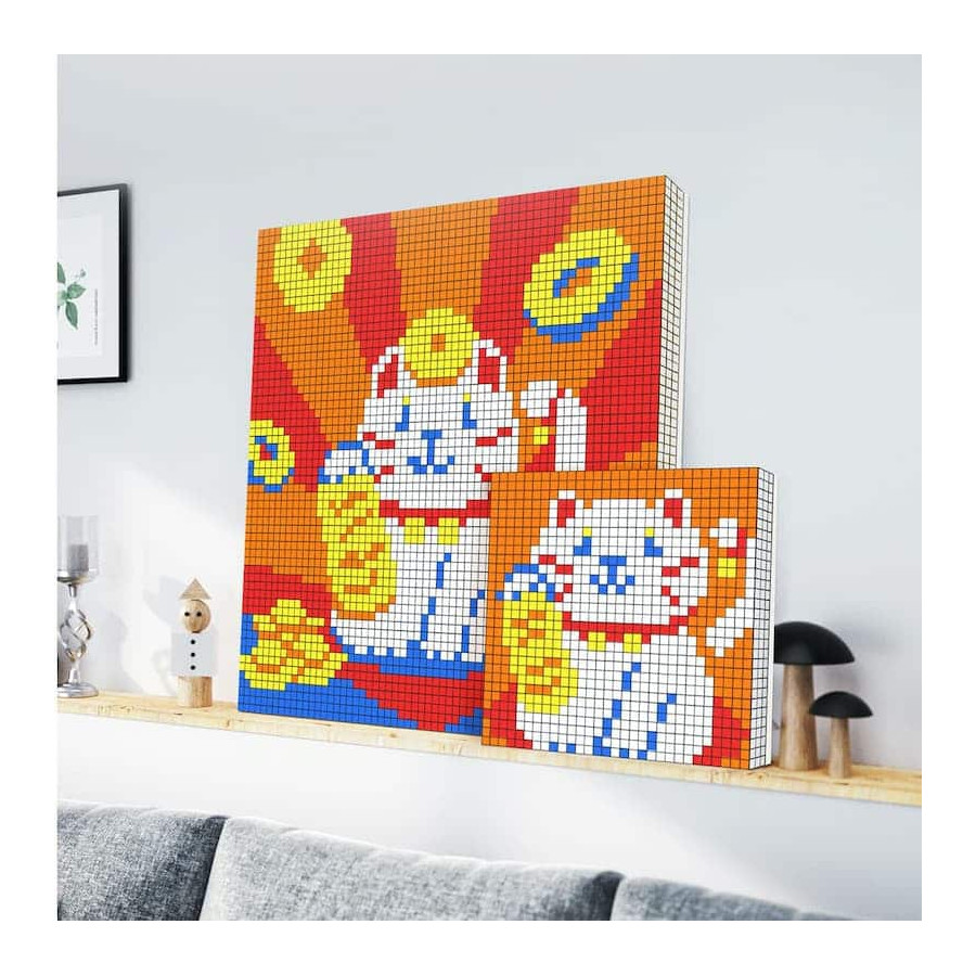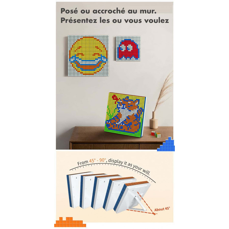 La mosaïque de cubes comme vous l'avez surement souvent déjà vu sur les réseaux sociaux. Cette fois ci elle peut être chez vous , produite et fabriquée par GAN. Cubes Gan 3x3 de 30mm fournis avec un cadre que vous pouvez accrocher au mur, qui peut aussi être utilisé en support. L'ensemble est un bloc que l'on peut associer à d'autres blocs pour réaliser des mosaïques de dimensions infinies.